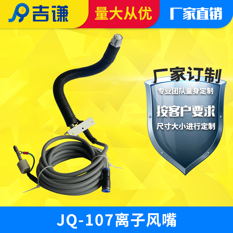 JQ-107蛇形離子風嘴可產生大量的帶有正負電荷的氣流,被壓縮氣高...