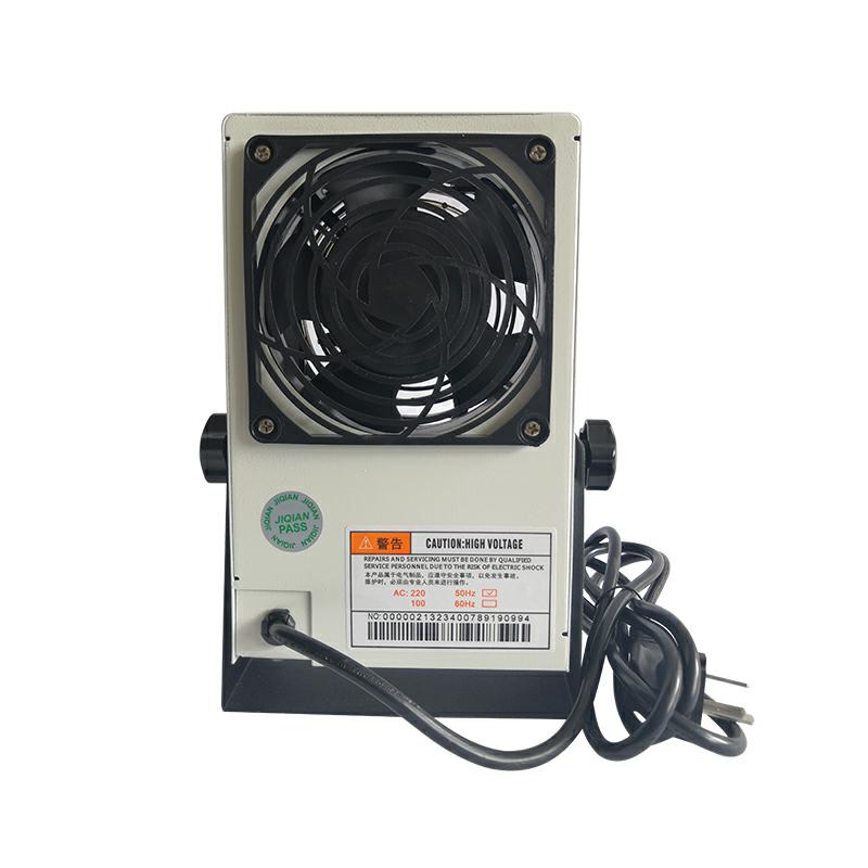 吉謙JQ-201離子風機可產(chǎn)生大量的帶有正負電荷的氣流,可以將物體上所帶的電荷中和掉,當物體表面所帶為負電荷時,它會吸引氣流中的正電荷,當物體表面所帶為正電荷時,它會吸引氣流中的負電荷,從而使物體表面的靜電被中和,達到消除靜電的目的