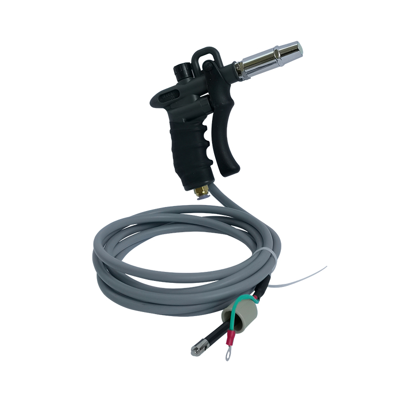 JQ-606離子風槍要配備JQ-501高壓發生器一起使用,將風槍連接線末端插入高壓發生器高壓輸出插孔,順手針旋轉到底,然后將風槍連接線的接地線接地高壓發生器外側的接地柱上,并確認接地良好后,將高壓發生器的插頭插入帶有接地線的插座上(注意高壓發生器的使用電壓,風槍接上空氣壓縮氣,打卡高壓發生器電源即可工作