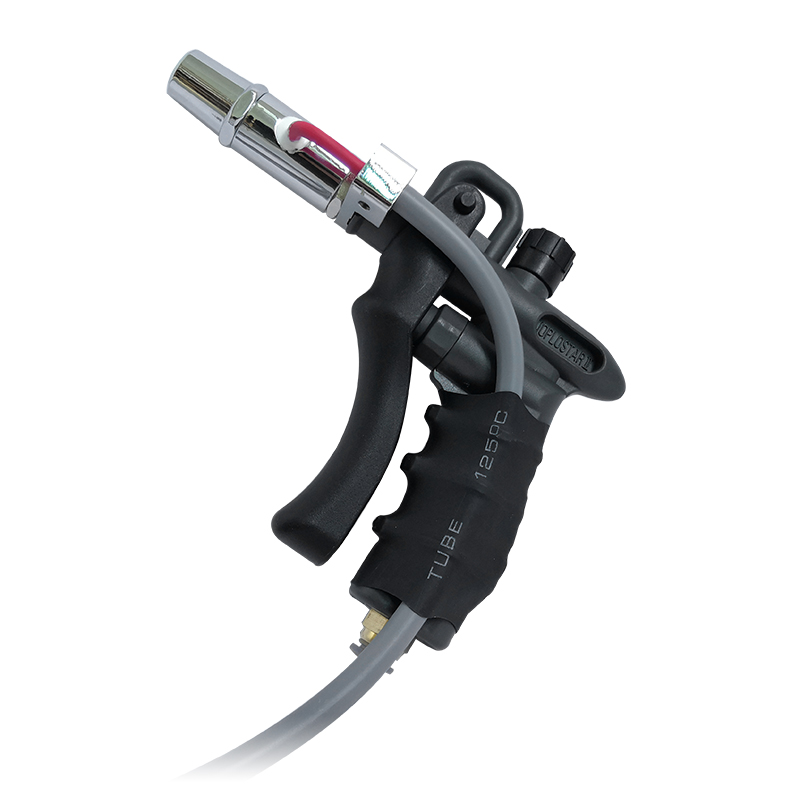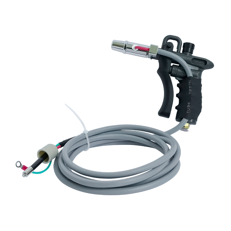 JQ-606離子風槍可產生大量的帶有正負電荷的氣團,被壓縮氣高速吹出,可以將物體上所帶的電荷中和掉,當物體表面所帶電荷為負電荷時,它會吸引氣流中的正電荷,當物體表面所帶電荷為正電荷時,它會吸引氣流中的負電荷,從而使物體表面上的靜電被中和掉,達到消除靜電的目的,高速壓縮氣還可將物體上的頑固積塵吹走