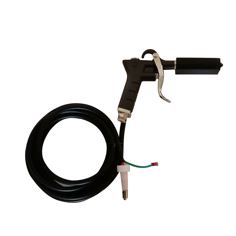 JQ-603離子風槍可產生大量帶有正負電荷的氣團,被壓縮氣高速吹出可將物體表面上所帶的電荷中和掉,當物體表面所帶電荷為負電荷時,它會吸引氣流中的正電荷,當物體表面所帶正電荷,當物體表面所帶電荷為正電荷時,它會吸引氣流中的負電荷,從而使物體表面上的靜電被中和掉,達到消除靜電的目的,高速的壓縮氣還可將物體上的頑固灰塵吹走