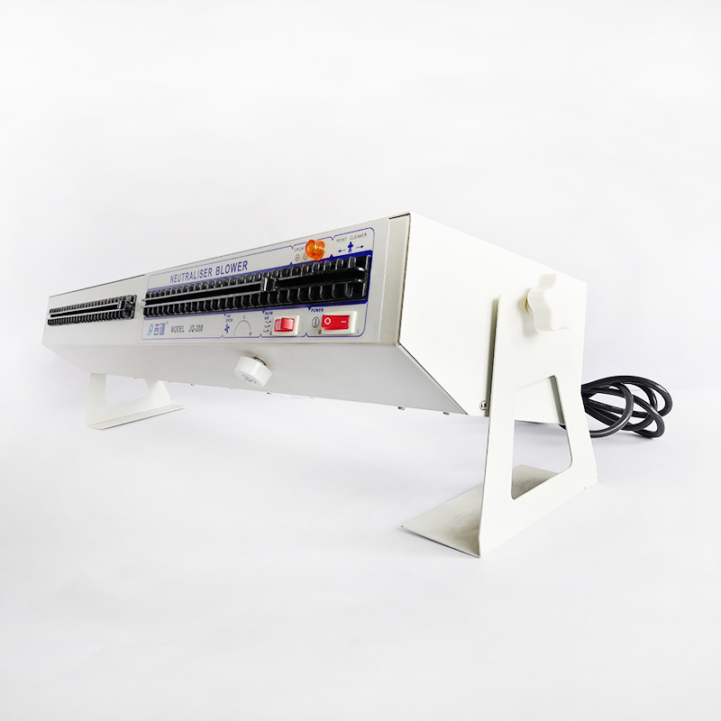 吉謙JQ-208A離子風機可產生大量的帶有正負電荷的氣流,可以將物體上所帶的電荷中和掉,當物體表面所帶為負電荷時,它會吸引氣流中的正電荷,當物體表面所帶為正電荷時,它會吸引氣流中的負電荷,從而使物體表面的靜電被中和,達到消除靜電的目的